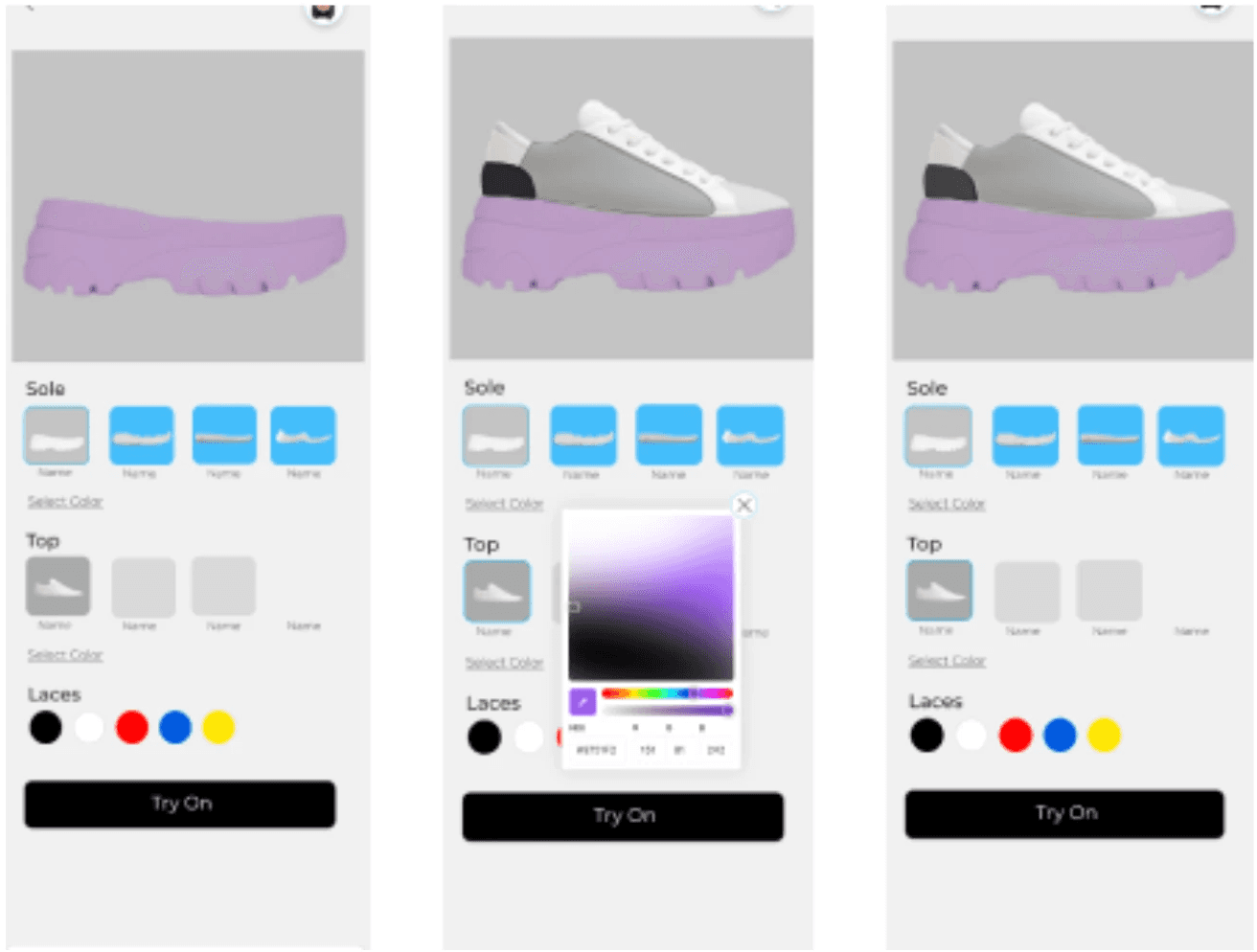 The 2D shoe preview wasn't enough. A flat image of the shoe gave users an incomplete picture of what they were designing. Without a fuller view, they couldn't properly evaluate their choices or feel confident in the result.